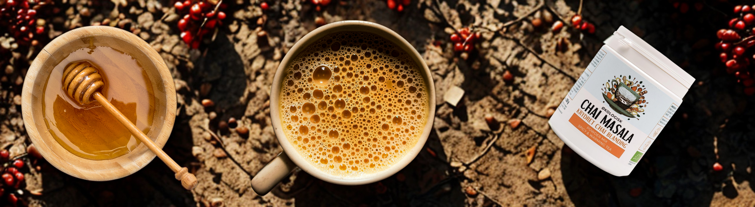Den Krydrede: En autentisk og koffeinfri Rømer Chai Masala, pisket op til en cremet latte med varm plantemælk, er som en flydende omfavnelse.