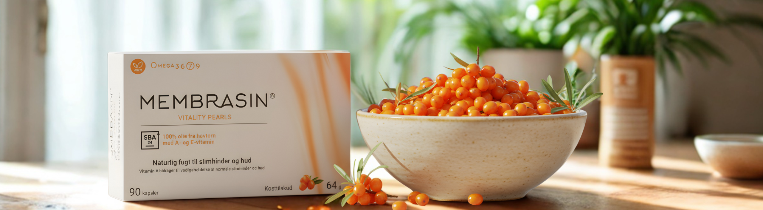 Dette er "specialisten". Membrasin er et verdenspatenteret kosttilskud baseret på en helt unik ekstrakt (SBA24) fra både frugtkødet og kernerne af havtornbær. Denne olie er en enestående rig kilde til en bred vifte af fedtsyrer, herunder den sjældne Omega-7, samt antioxidanter og plantesteroler.