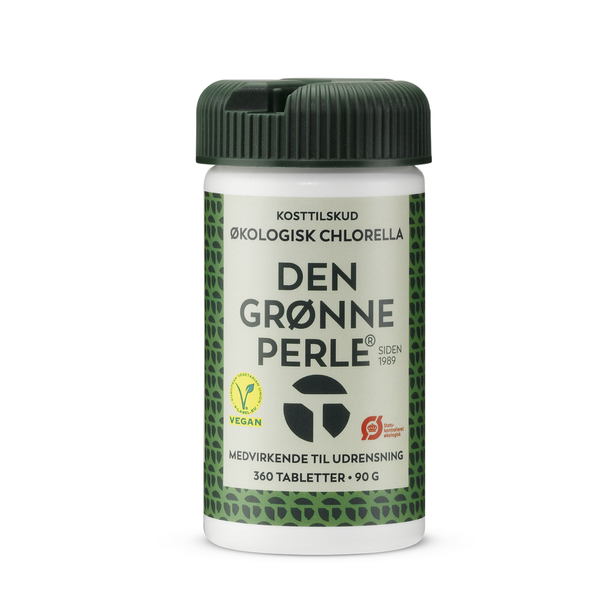 Den Grønne Perle® har siden 1989 været synonym med højeste kvalitet. Produktet består af 100% ren, økologisk og vegansk Chlorella-alge, kendt for de unikke, logo-prægede tabletter.