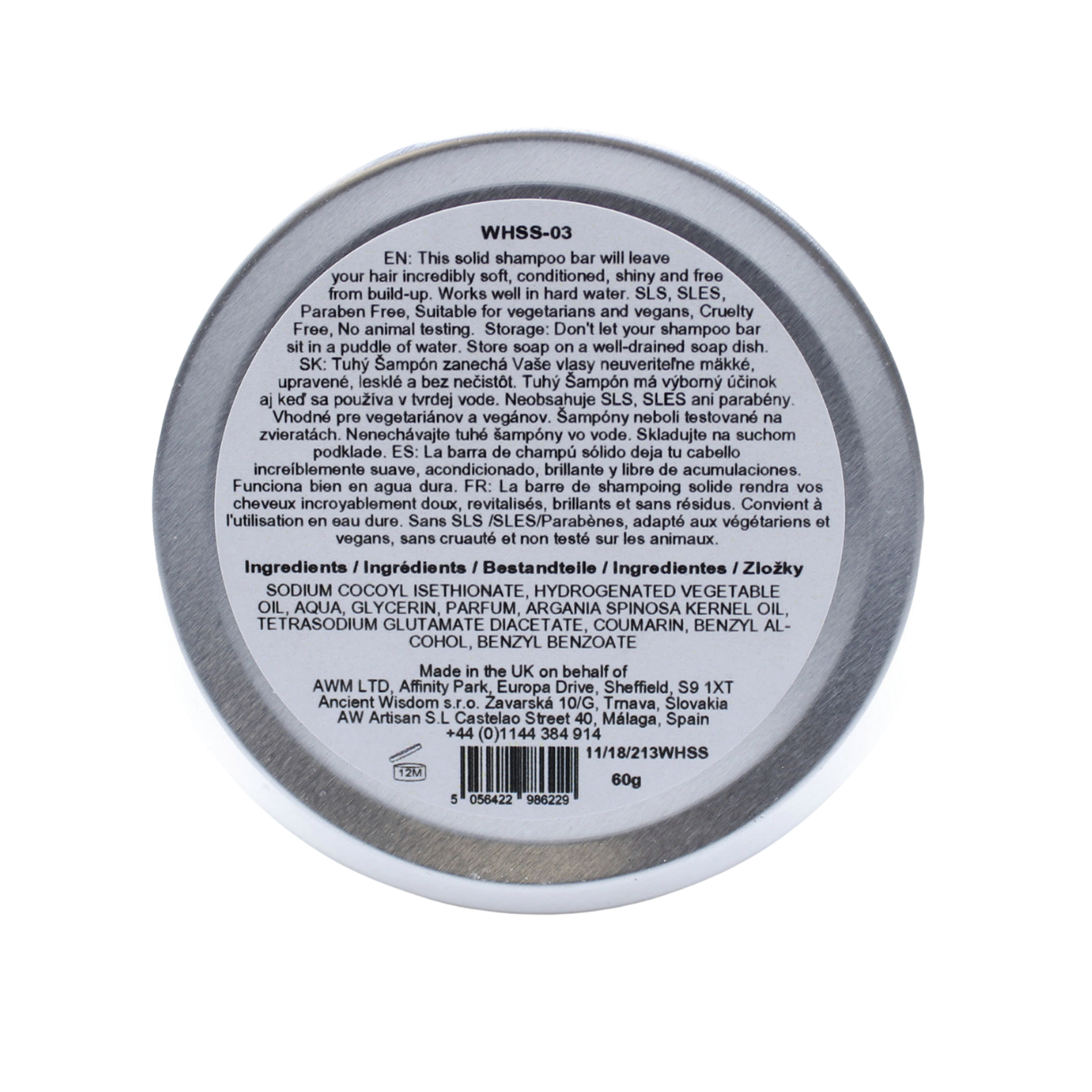 Hemmeligheden bag denne bar er indholdet af Arganolie (Argania Spinosa Kernel Oil). Arganolie er kendt som "Marokkos flydende guld" og er berømt for sine fugtgivende og blødgørende egenskaber, hvilket gør baren ideel til hår, der trænger til ekstra kærlighed og glans. Shampooen er håndlavet i Storbritannien og er 100% vegansk, plastfri og fri for SLS/SLES og parabener. Den fylder ingenting i toilettasken, men leverer et stort resultat: Op til 60 hårvaske fra én lille bar på 60g. Det er bæredygtig luksus, der dufter himmelsk.