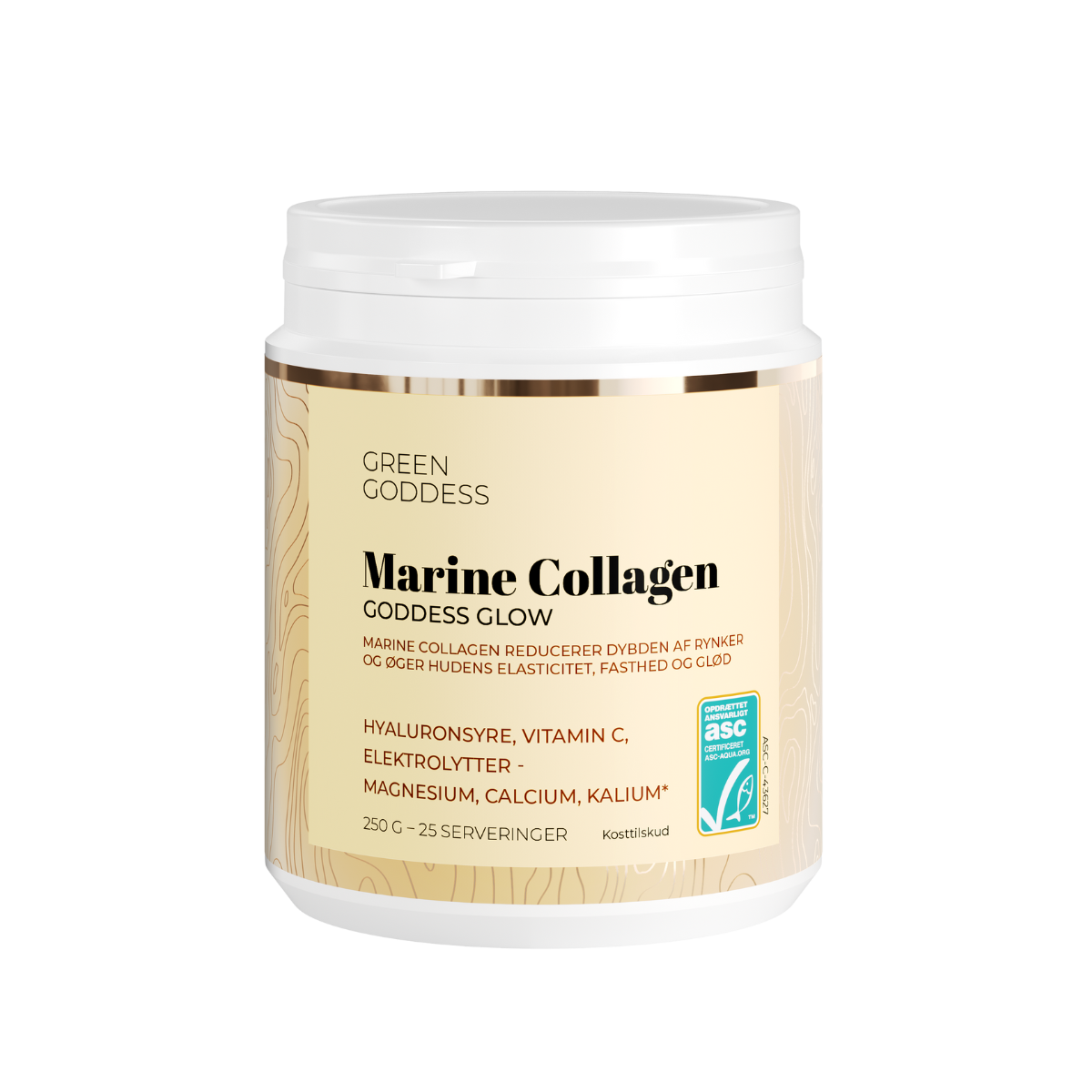 Bæredygtighed (ASC) Ligesom alle andre produkter fra Green Goddess, er råvaren ASC-certificeret. Det garanterer, at fisken stammer fra miljøvenligt og socialt ansvarligt opdræt.