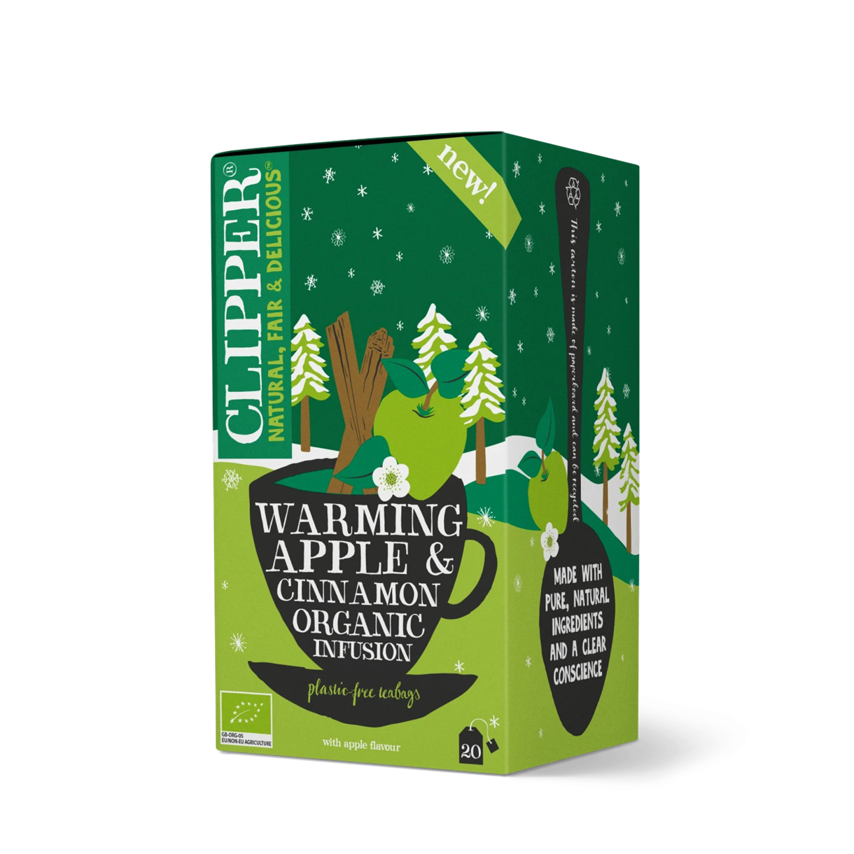 Clipper Warming Apple & Cinnamon Organic Infusion er teen, der giver dig følelsen af et varmt kram. Med sin rige aroma af krydret kanel og bagte æbler, leder den øjeblikkeligt tankerne hen på hygge, uldtæpper og efterårsstorme.