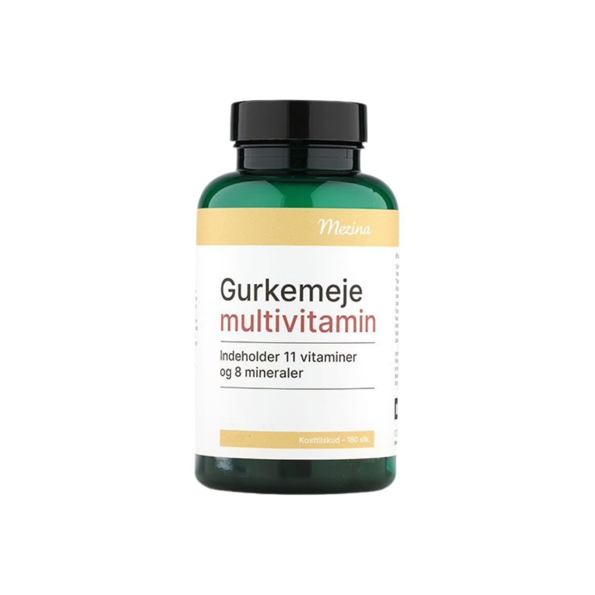 Når du vælger Mezina Gurkemeje Multivitamin, vælger du et bredspektret tilskud. Sammensætningen af 11 vitaminer og 8 mineraler er nøje udvalgt for at understøtte kroppens funktioner bredt.