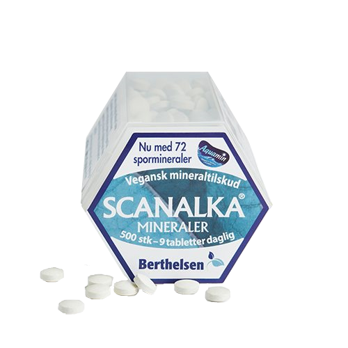 Mineraler er fundamentet for kroppens sundhed. De fungerer som byggesten i knogler og tænder, men de er også afgørende "tændrør" for tusindvis af enzymprocesser, der holder os i live. Berthelsen Scanalka er sammensat for at give dig en "all-round" dækning, så du ikke behøver at købe 12 forskellige dåser.
