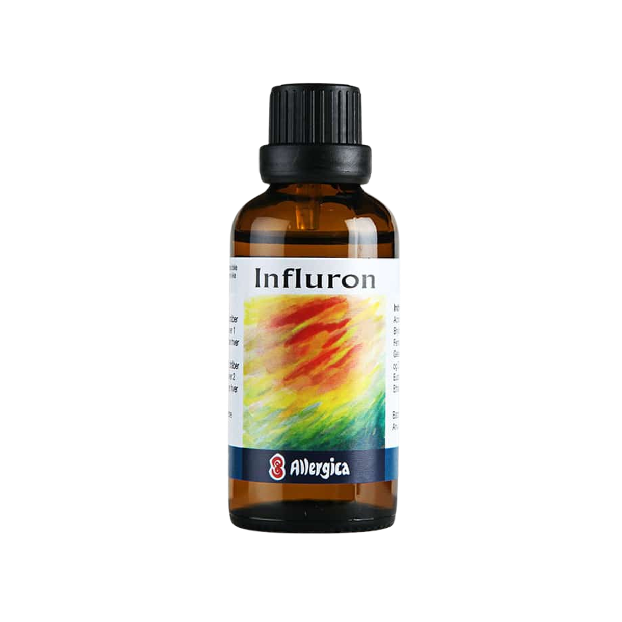 Dette er et håndpotenseret homøopatisk lægemiddel i dråbeform fra den danske producent Allergica. Influron er et såkaldt kompleksmiddel, hvilket betyder, at det er en sammensætning af flere forskellige aktive stoffer, som er bearbejdet og stærkt fortyndet (potenseret) efter klassiske homøopatiske principper.