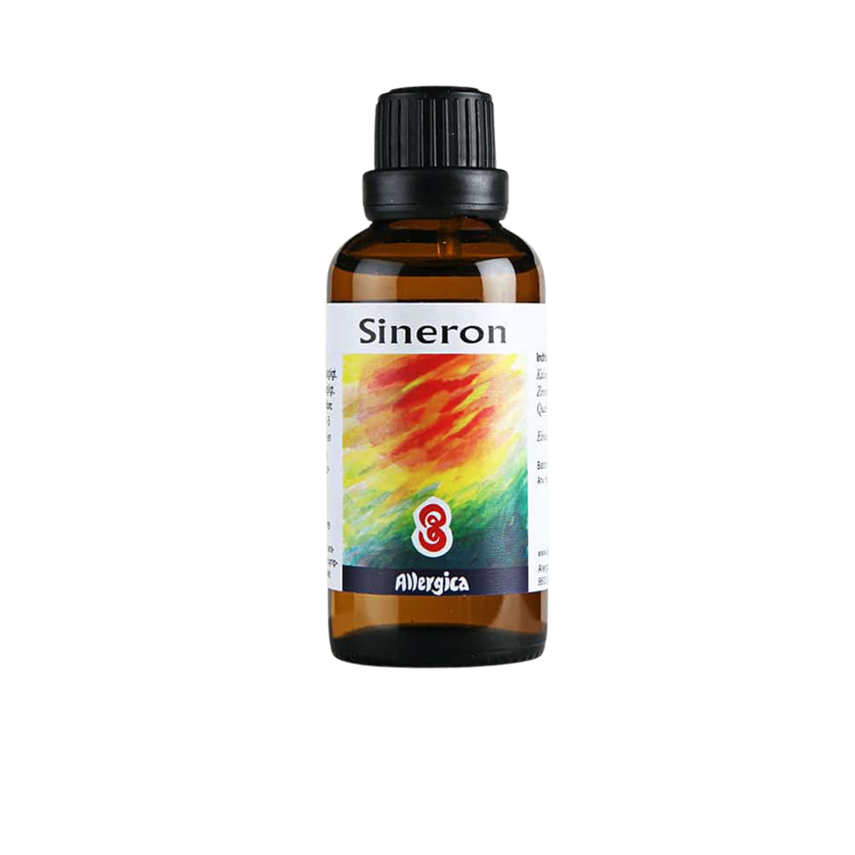 Dette er et håndpotenseret homøopatisk lægemiddel i dråbeform fra den danske producent Allergica. Sineron er et såkaldt kompleksmiddel, der er skabt med en særlig sammensætning af tre forskellige aktive, mineralske stoffer.