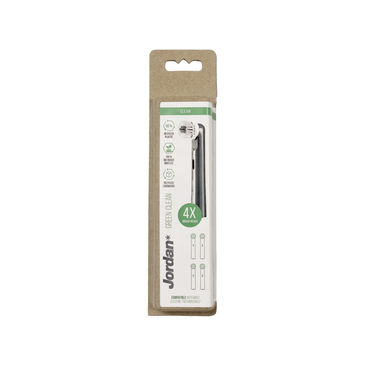 Med Jordan Green Clean Brush Heads i en 4-styks pakke gør du det nemt at opretholde en bæredygtig rutine på badeværelset. Denne større pakning er ideel til familien eller til dig, der gerne vil have et lille lager liggende, så du altid kan skifte børstehovedet til tiden.