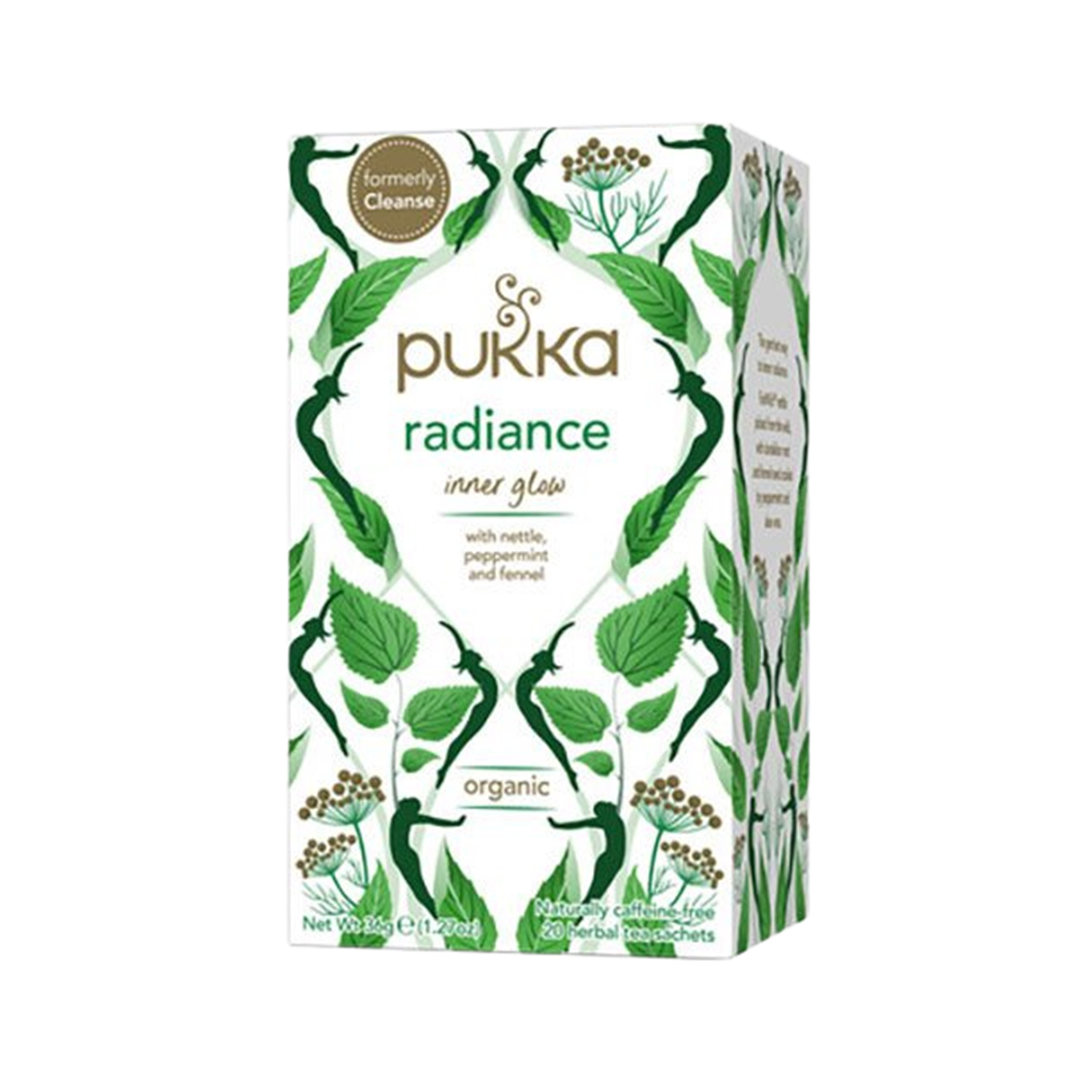 I årtusinder har urteterapeuter og naturfolk vidst, at sand skønhed og velvære starter indefra. Pukka Radiance (tidligere kendt under navnet Cleanse) er nøje sammensat af Pukkas førende urteeksperter for at understøtte kroppens naturlige balance. Hver eneste ingrediens spiller en specifik rolle i at skabe en drik, der føles både let, frisk og nærende.