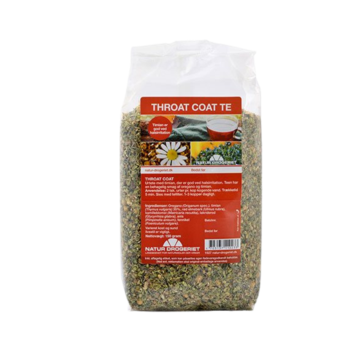 Et Varmt, Blødt og Beskyttende Tæppe til Din Ømme Hals Når halsen kradser, stemmen er ru, eller du bare føler dig sløj, er der intet som en varm og lindrende kop te. Natur-Drogeriets Throat Coat te er specielt sammensat til at give mere end bare varme. Det er en potent og gennemtænkt blanding af urter, der er specifikt udvalgt for deres anerkendte evne til at berolige og pleje en irriteret hals og et trængt svælg.