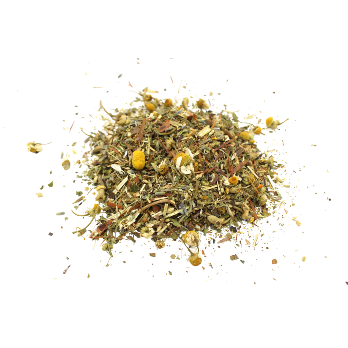 Ingredienser: Ingredienser: Kamille, røllike, perikon, lavendel, citronmelisse, lapacho, hvidtjørn, passionsblomst, aroma.