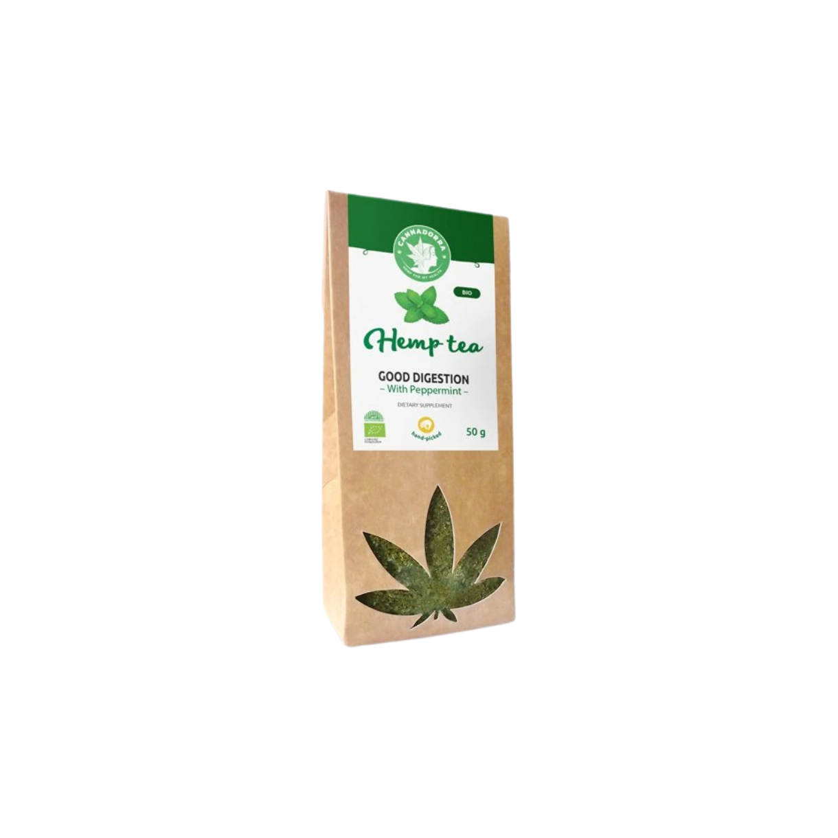 Cannadorra Hampe-te m. Frisk Mynte/Mint 50 g er en BIO-certificeret te-blend, der er særligt sammensat til at fremme "God Fordøjelse". Denne harmoniske blanding forener de jordbundne egenskaber fra hamp med pebermyntens friske og kølende virkning. Det er den ideelle drik til dig, der ønsker en naturlig måde at berolige fordøjelsessystemet på efter et måltid, eller som blot har brug for en pause, der bringer både krop og tanke i balance. Den friske smag gør den til en fornøjelse at drikke både varm og kold.
