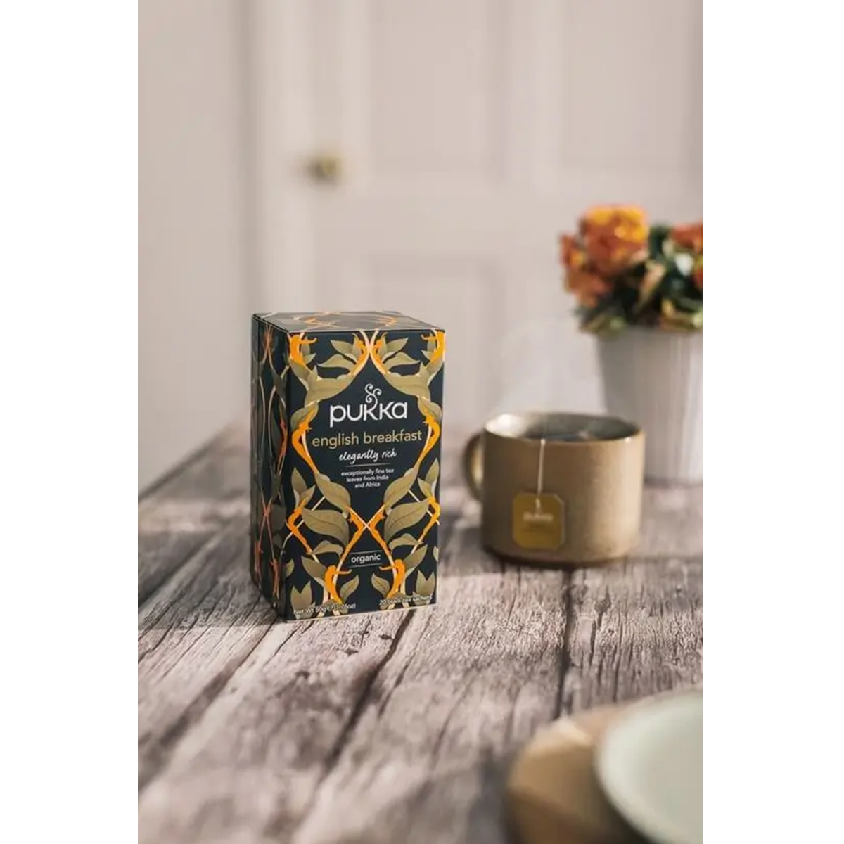Pukka English Breakfast er en hyldest til den mest ikoniske af alle te-blandinger. Det er en te, der er designet til at være den trofaste, pålidelige og utroligt velsmagende ledsager til din morgenrutine. Pukkas te-mestre har rejst verden rundt for at finde de fineste, økologiske og helbladede sorte teer fra de bedste te-haver i Indien og Afrika. Ved at blande teer med forskellig karakter – fra de maltede og robuste til de mere lette og aromatiske – har de skabt en English Breakfast, der er usædvanligt fyldig og smagfuld, men samtidig smukt afrundet og uden den skrappe bitterhed, som man kan finde i andre morgen-teer.