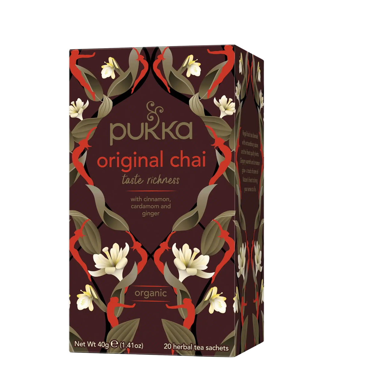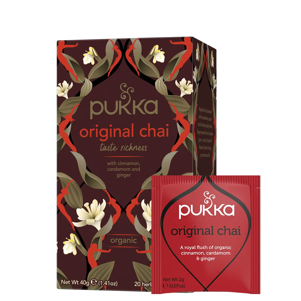 Tag med på en eksotisk smagsrejse til Indien med denne majestætiske og prisvindende Original Chai fra Pukka. Dette er en autentisk og dybt aromatisk teblanding, der er skabt til at varme og glæde dine sanser.