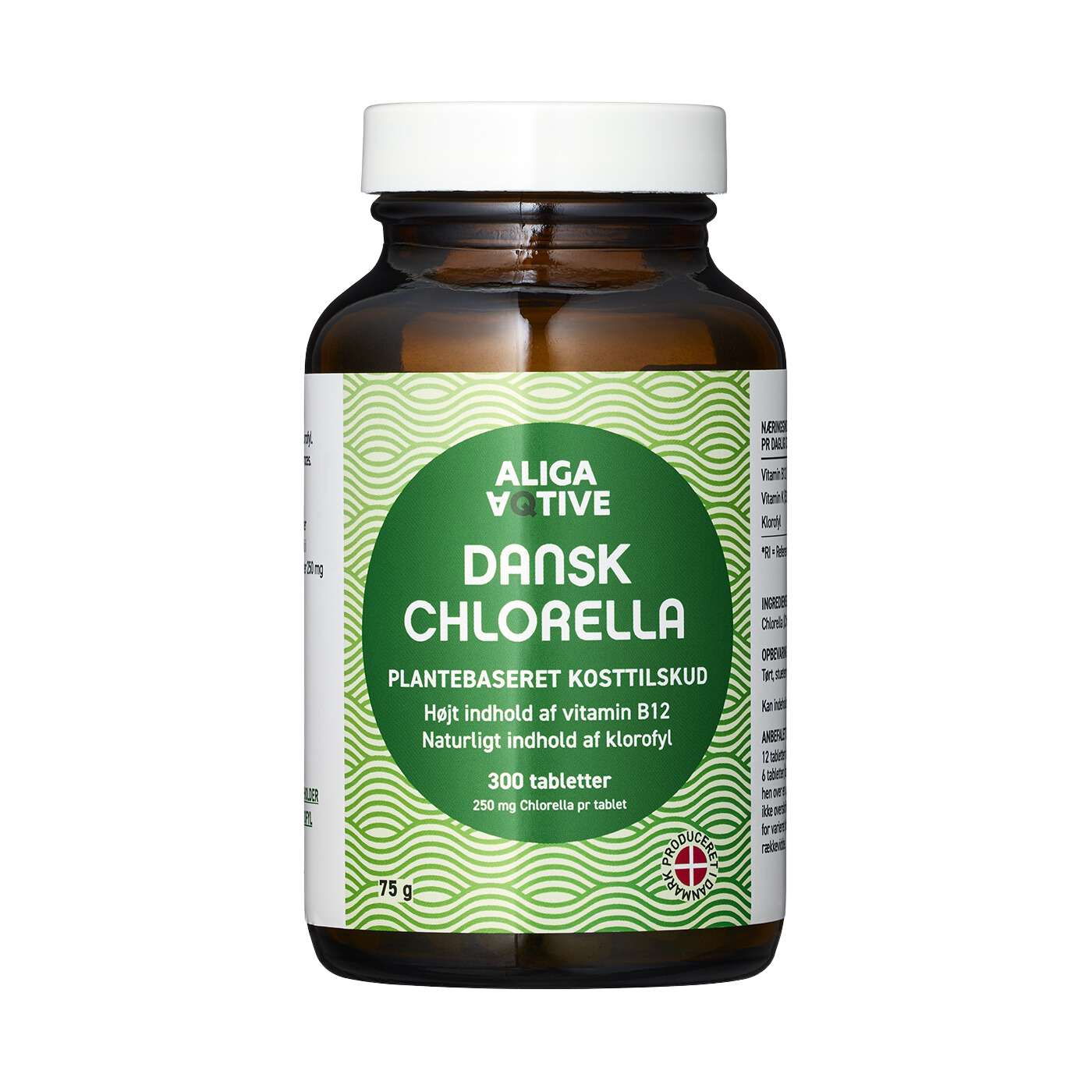 • Her får du et helt unikt og rent kosttilskud, der kombinerer superfood-algen Chlorellas egenskaber med en garanti for dansk kvalitet. Aliga Aqtive Dansk Chlorella er, som navnet antyder, 100% dyrket og produceret i Danmark på Aliga Aqtives egen fabrik i Nordjylland.