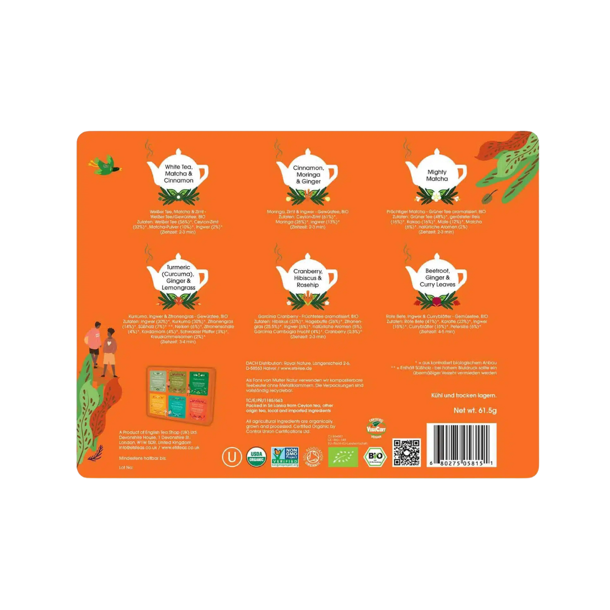• Etisk & Bæredygtig: Alle teer er økologiske, Fairtrade og CO2-neutralt certificerede. Pakket i plastikfri og komposterbare materialer.