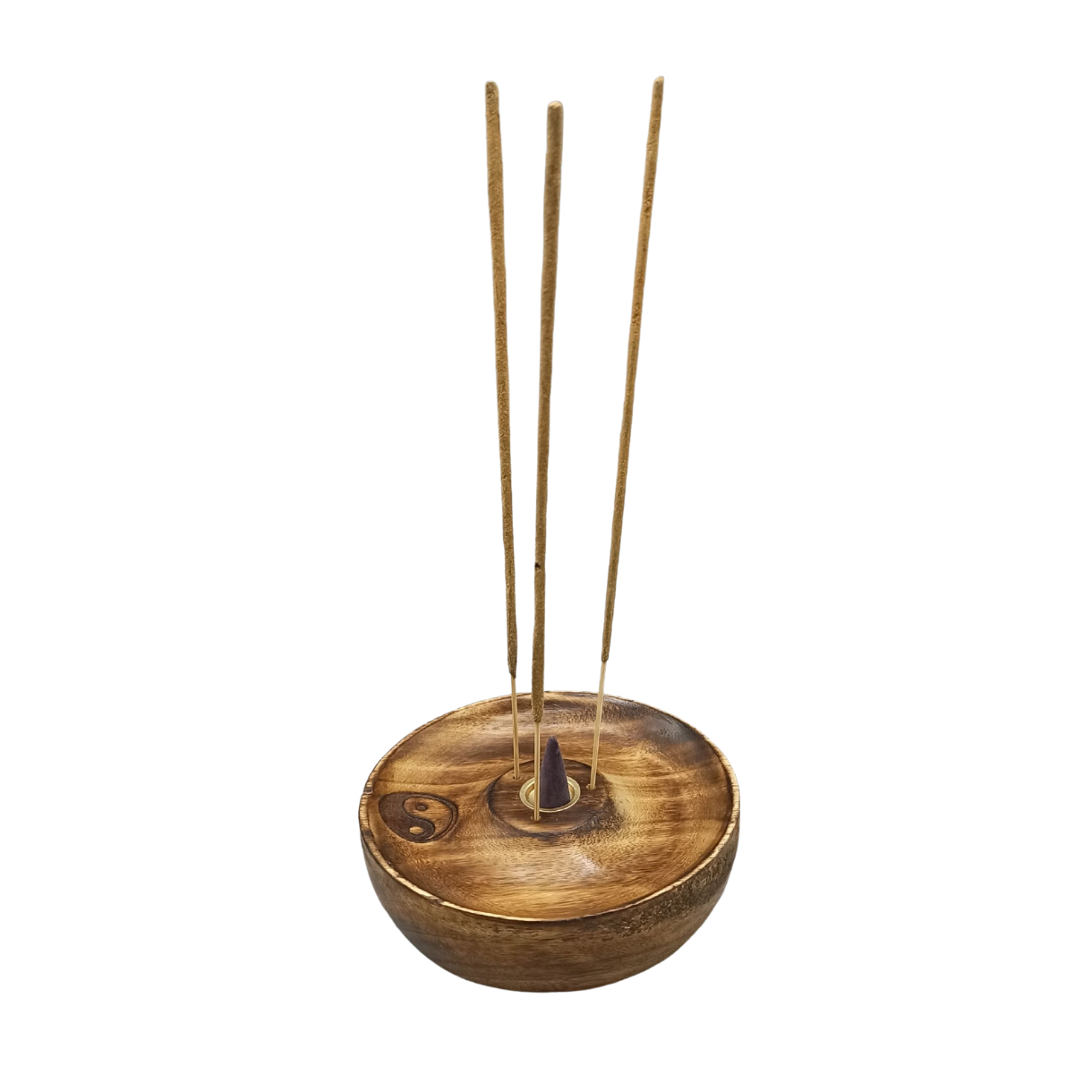 Yin & Yang Røgelseholder – Håndskåret Mangotræ til Pinde & Cones