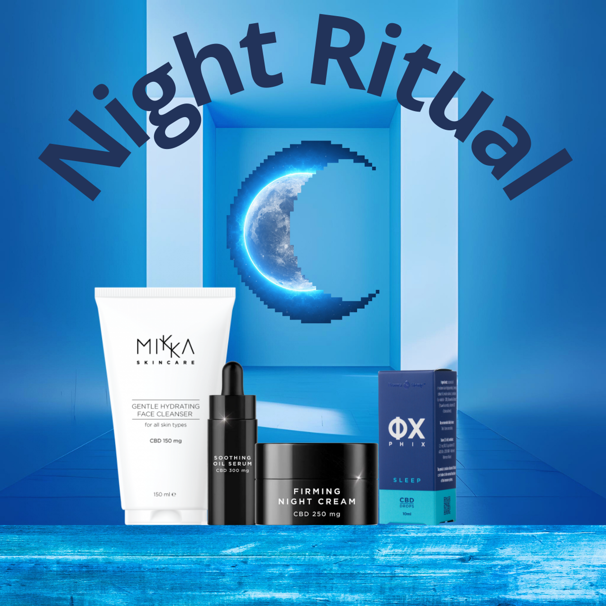 • Pleje Udefra: En komplet 3-trins MIKKA CBD hudplejerutine (Rens, Serum & Natcreme), der renser, genopbygger og opstrammer huden, mens du sover.