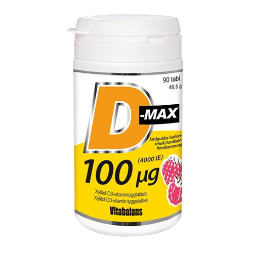 • Gør dit daglige D-vitamintilskud til en nem og behagelig oplevelse. Vitabalans D-max er en højstyrke tyggetablet med hele 100 µg D-vitamin pr. dagsdosis. Det er den ideelle løsning til dig, der har behov for et ekstra potent tilskud, men som ikke bryder dig om at sluge piller.