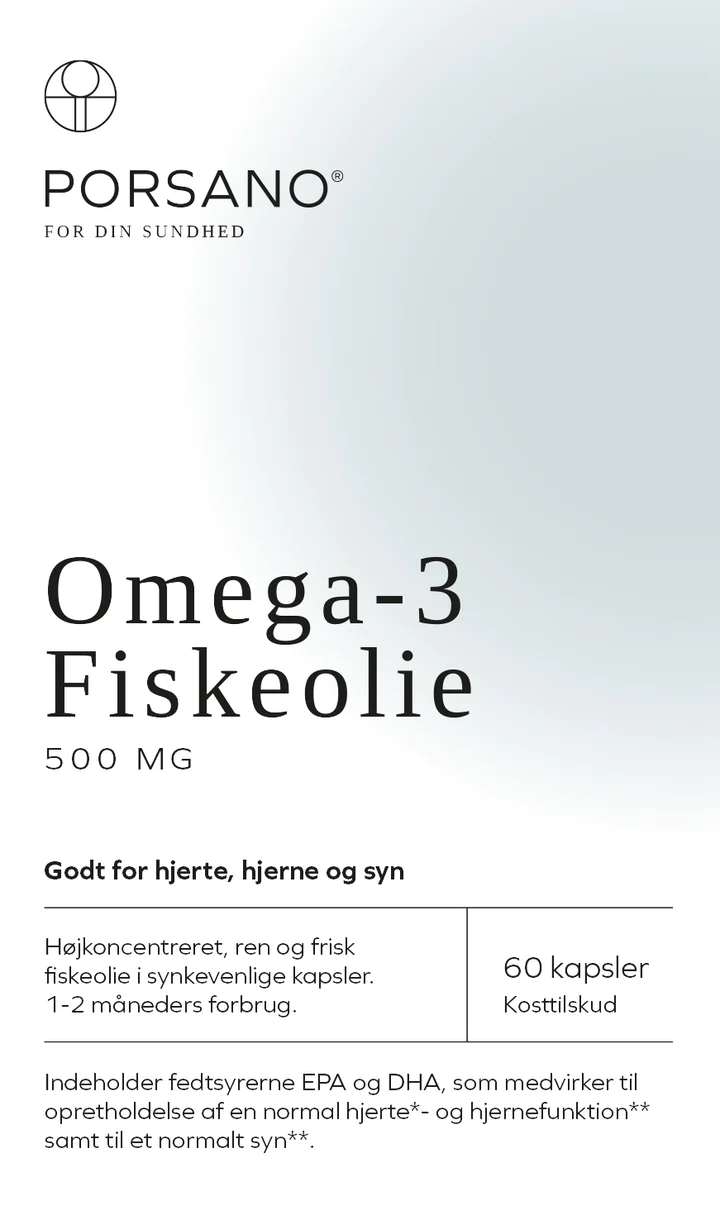 En Ren og Frisk Investering i Dit Hjerte Hjertet er kroppens utrættelige motor, og det fortjener den bedste pleje og de rigtige næringsstoffer for at kunne fungere optimalt hele livet. Porsano Omega-3 Fiskeolie er et højkvalitets kosttilskud, der er designet med ét klart formål: at give dit hjerte en målrettet og effektiv støtte fra naturens egne, essentielle fedtsyrer.